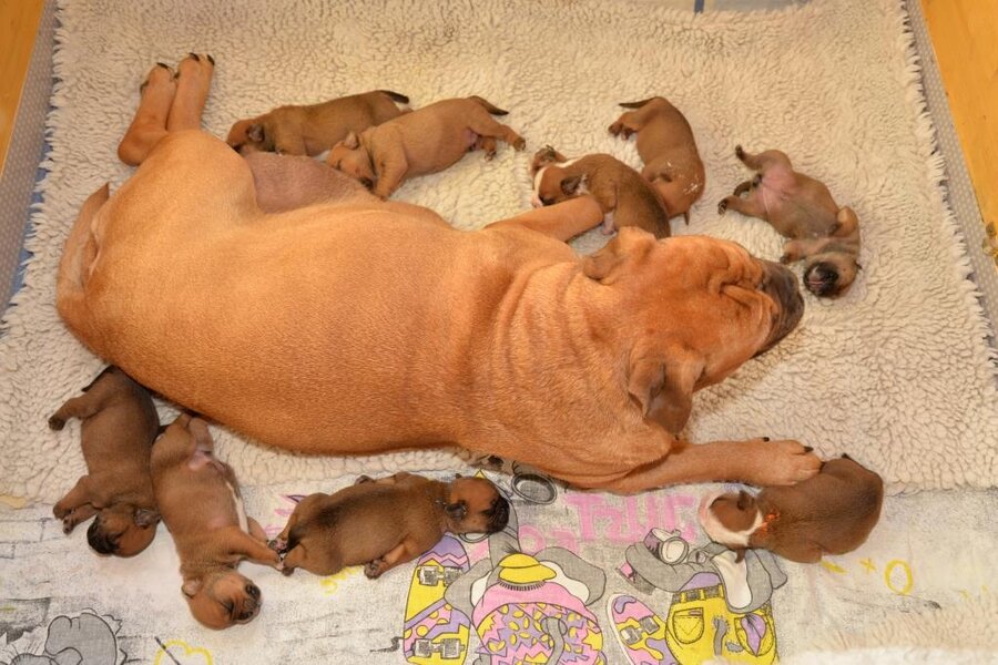 Continental Bulldog Seeblickbulls G-Babys mit Mastiff DON THEO gestern in der Küche