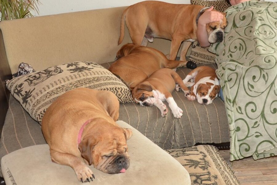 Nachdem heute JAGGER ausgezogen ist, sind die verbliebenen Zwei erstmal mit zu Claudia gezogen, um dort schon mal das entspannte und lebensnotwendige Bully-Couching kennen zu lernen.