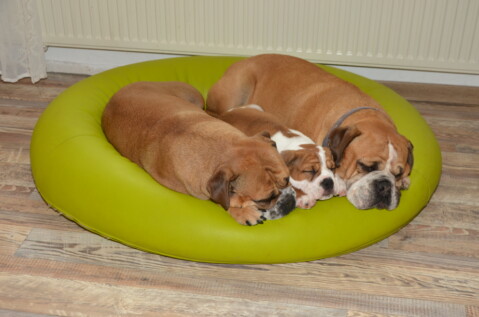 Mama und die jüngste Tochter zusammen im Hundebettchen.