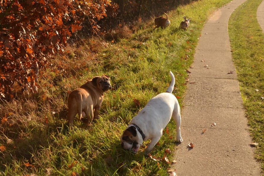 Seeblickbulls DONNA MIA und BIG OSKAR mit Bulldog-Bogeys KIMBERLY von den Windy Cottage Bulldogs