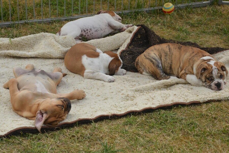 Continental Bulldogs Seeblickbulls JOSEFINE, MOLLI und MORTIMER mit BRANDO vom Greifenseeblick