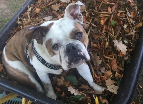 "Ich hab Herrchen bei'n Blätterße-Sammeln dehelft."